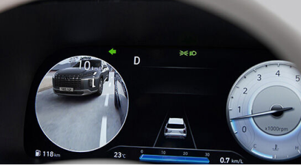 El monitor de visión de punto ciego escanea detrás y a lo largo de cada lado de la Palisade avisando al conductor cuando otros vehículos entran en la zona monitoreada para evitar accidentes al realizar cambio de carril.